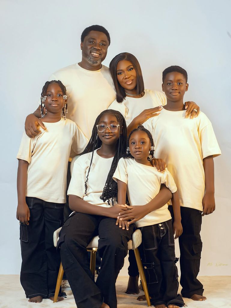 The screen icon took to Instagram to share a set of stunning new portraits featuring herself, her husband Prince Odianosen Okojie, and their four children: Purity, Henry, Angel, and Divine-Mercy.