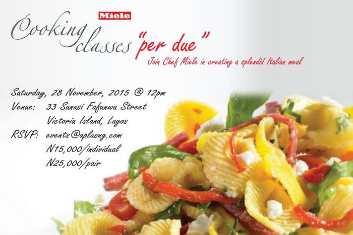 Miele Nigeria plans on taking some willing participants on a taste bud cruise to Italy. During their Italian themed cooking class, they will be preparing a 3 course meal which will comprise of Salad ', Main 'Ligurian Seafood Pasta Trenette with Tomato Sauce Dessert' and