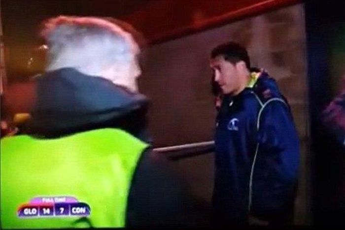 Mils Muliaina's arrest was captured by TV cameras moments after his side's 14-7 loss at Kingsholm with the entire incident broadcasted live on TV.