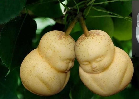 These fruits are a rare find and are grown in China using moulds that shape the pears as they grow. Each pear is meticulously cultivated to form the Buddha shape, making them a real work of art.