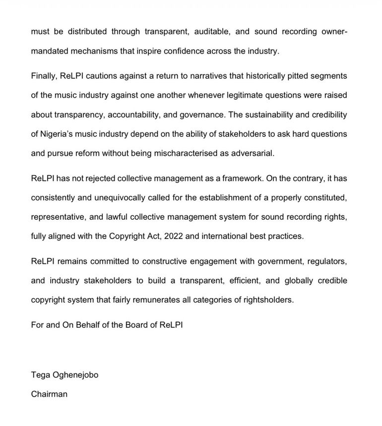 ReLPI cautions against a return to narratives that historically pitted segments of the music industry against one another whenever legitimate questions were raised about transparency, accountability, and governance.”