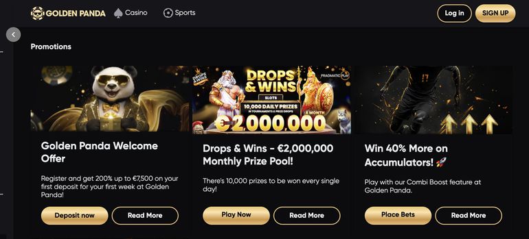 CLAIM A 200% BONUS UP TO €7,500 AT GOLDEN PANDA TODAY