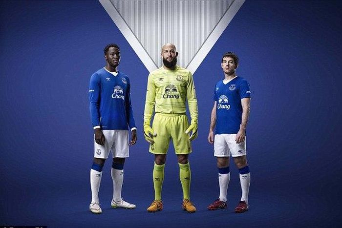 Some of the promotional photos for the new kits show Romelu Lukaku, Tim Howard and Leighton Baines modelling the new kit.