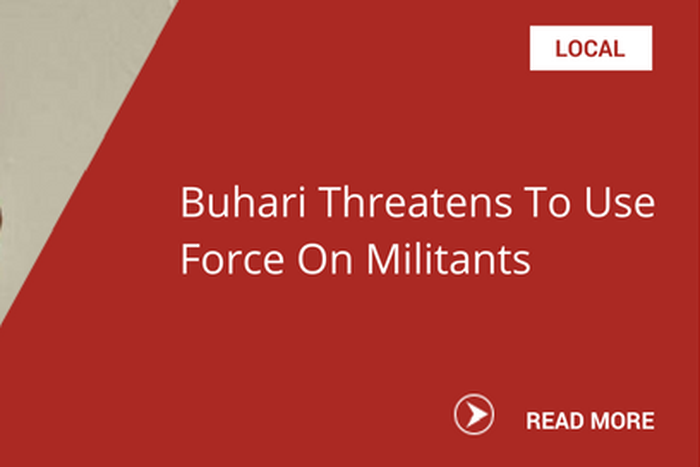 Buhari said “Recently, we flagged off the Clean-up of Ogoniland as part of the programmes to salvage the ravaged environment. We are convinced that undertaking such a monumental project will contribute to addressing the root causes of militancy in some parts of the Niger Delta region. However, for the avoidance of doubt let me state that other options are still open including decisive military action, if necessary, to deal with the criminal elements disguised in ethnic regalia to sabotage the country largely for their selfish and parochial interests. However, our priority, still remains constructive engagement of the stakeholders for peace.”