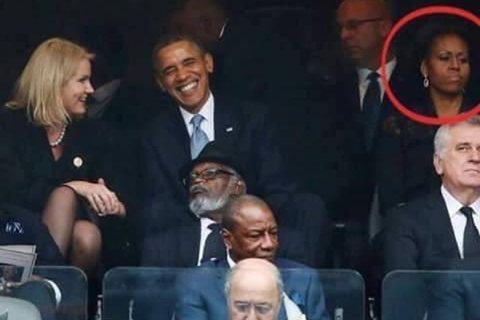 As she spotted President Obama laughing and smiling at this pretty woman, she just squeeze face: