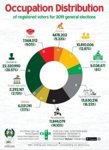 The North Central has 13,366,070 voters, representing 15.91 per cent; South-East 10,057,130 registered voters or 11.91 per cent, and South-West 16,292,212 or 19.39 per cent of the total number of voters.