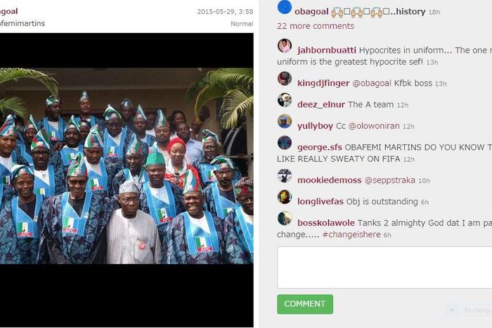 The Seattle Sounders striker took to his Instagram page to show his excitement, posting a photo of Buhari and his vice, Yemi Osibajo alongside other All Progressives Congress cheiftains.