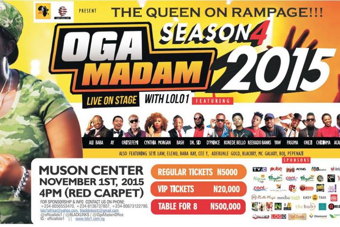 Multiple award winning on-air Personality Omotunde Adebowale David, 'LOLO 1 of 95.1 Wazobia FM' is set to hold her annual comedy event tagged OGA Madam live on stage, [Queen on Rampage] Edition.