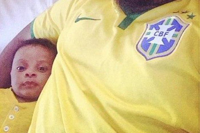 The father of one wore matching outfits- the Brazilian jersey- with his son.