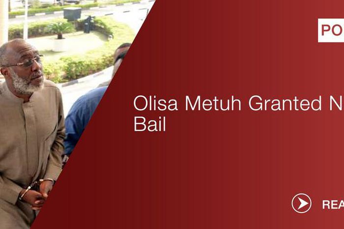 The National Publicity Secretary of the People's Democratic Party (PDP), Olisa Metuh, has been granted bail in the sum of N400 million, with two sureties in the sum of N200 million each.