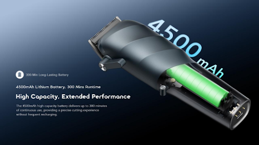 With a 4500 mAh lithium battery capacity, the MasterCut Pro can deliver up 5-6 hours of continuous use. This is perfect for a back-to-back family cut, long sessions, a way from power or a business travel.
