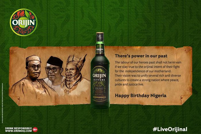 Orijin your premium contemporary alcoholic blend celebrates with Nigeria on her 55 Independence anniversary by acknowlegding the labors of our hereos, both past and present.