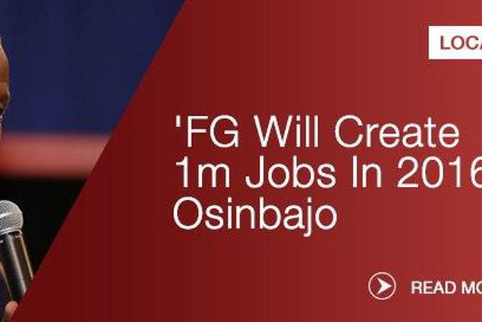 The Federal Government will create no fewer than one million direct jobs in 2016, the Vice President, Prof. Yemi Osinbajo, has said