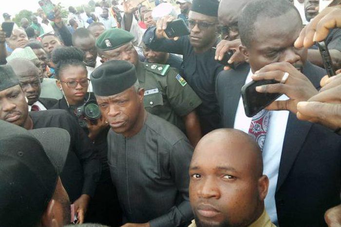 Osinbajo’s motorcade ran into the protesting crowd en-route Nnamdi Azikiwe International Airport, Abuja, where he alighted and addressed the aggrieved protesters.