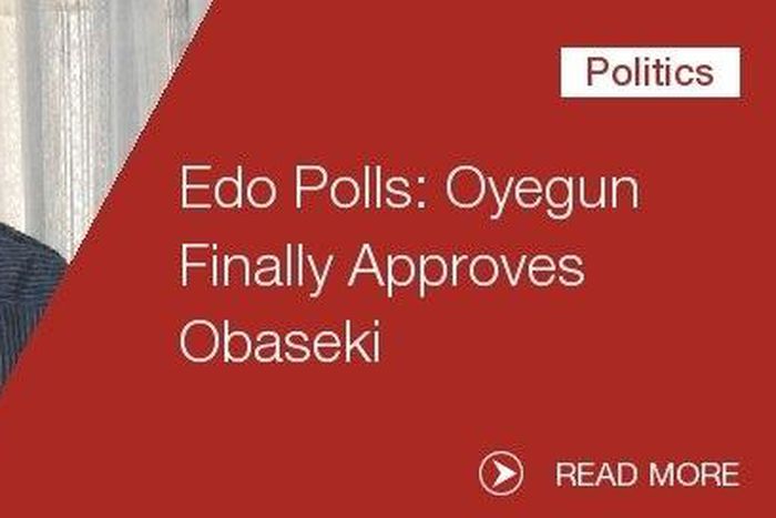 “As the Party prepares for the September 10, 2016, governorship election in Edo State, I call on all aspirants, party leaders, stakeholders and teeming members of our great Party to close ranks and unite as a strong political fighting force behind the candidature of Mr. Godwin Obaseki for a landslide victory at the forthcoming Edo State governorship election," Odigie-Oyegun said.