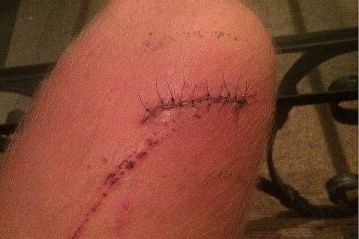 McShane posted the photo of the injury on his Instagram page, writing, "Healing well everyone. Looks like Edward Scissor hands has just give me a leg massage."