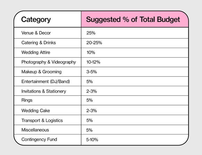 Here’s a simple guide to help you allocate your budget wisely. You can tweak the percentages based on your priorities, but this serves as a realistic template.