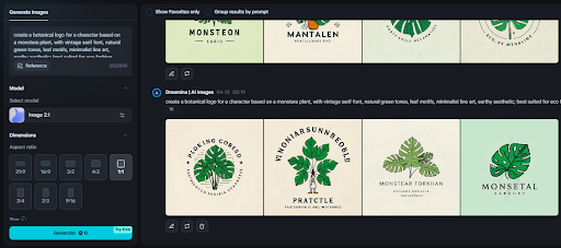 Consider your plantsona's energy. Are they minimalist and modern, or mystical and earthy? Now express that in the visual aesthetic of their logo. Go to the AI logo generator, then type in a prompt that combines plant imagery with graphic design hints. For instance: