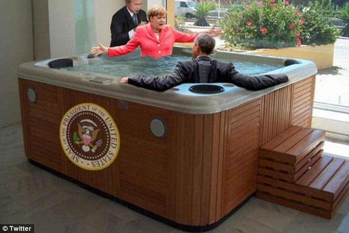 A photograph of German chancellor Angela Merkel and Barack Obama has gone viral with several memes popping up.