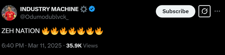 OdumoduBlvck has warmly reacted to the clip via his X account, where he posted "Zeh Nation" in acknowledgment of the young rapper.