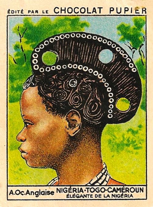 Élégante De La Nigéria” (1950), trading card with an illustration of an Igbo woman [Ukpuru]