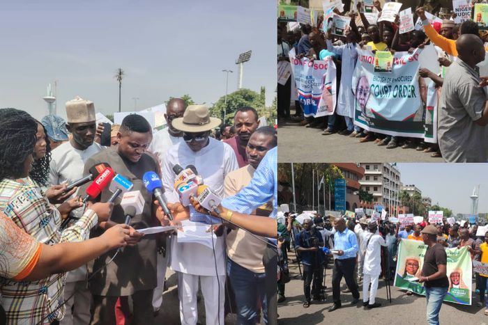 A massive protest rocked Abuja on Monday as members of the Coalition of Civil Society Organisations in Nigeria staged a demonstration against what they described as the “politicisation of the judiciary” in Benue State.