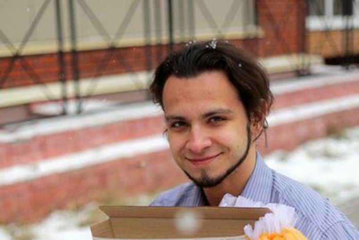 A man in Russian chose a pizza cake as his bride and conducted a proper wedding ceremony in a pizzeria for both of them to be joined as 'man and food'.