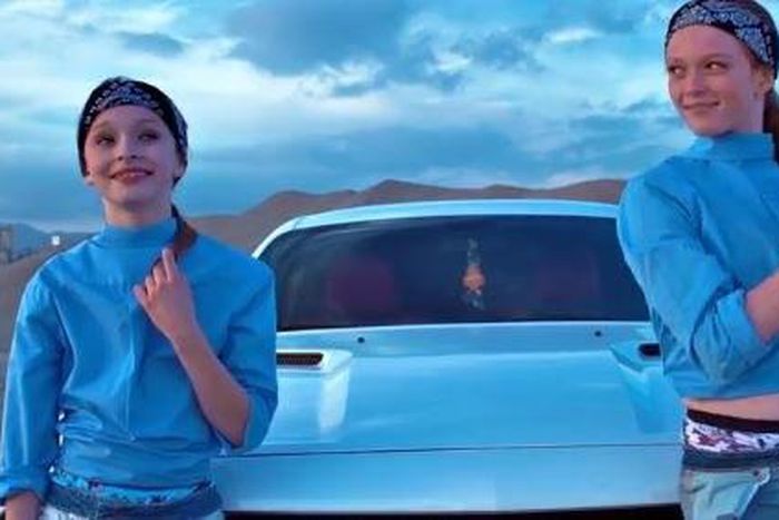 Wearing identical outfits, the pair deliver a perfect choreography in the desert.