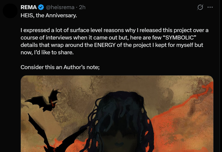 July 10, 2025, marks the first anniversary of Rema's sophomore album 'HEIS', and the superstar is marking the moment by sharing some insights into the project's artistic depth.