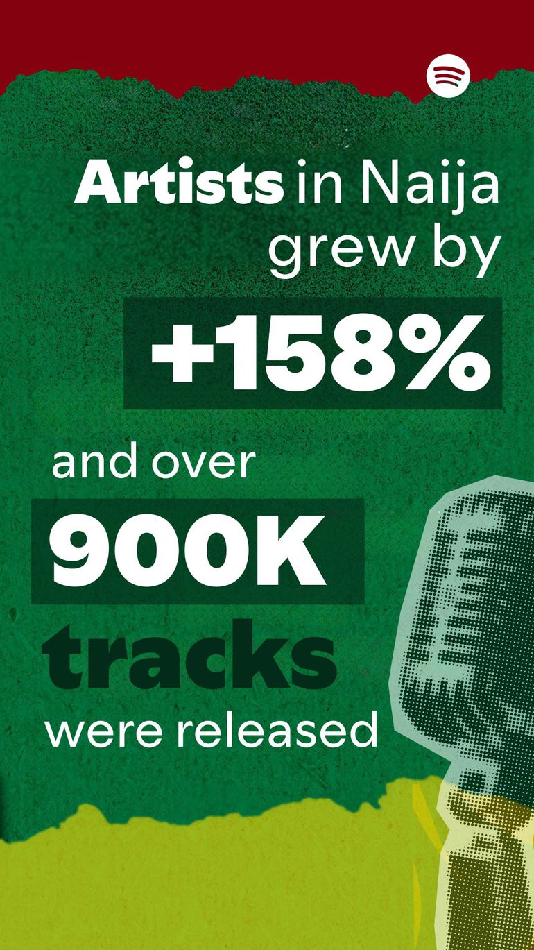 The number of Nigerian artists on Spotify has grown +158% since launch, reflecting an expanding pipeline of local creators reaching audiences at home and around the world.