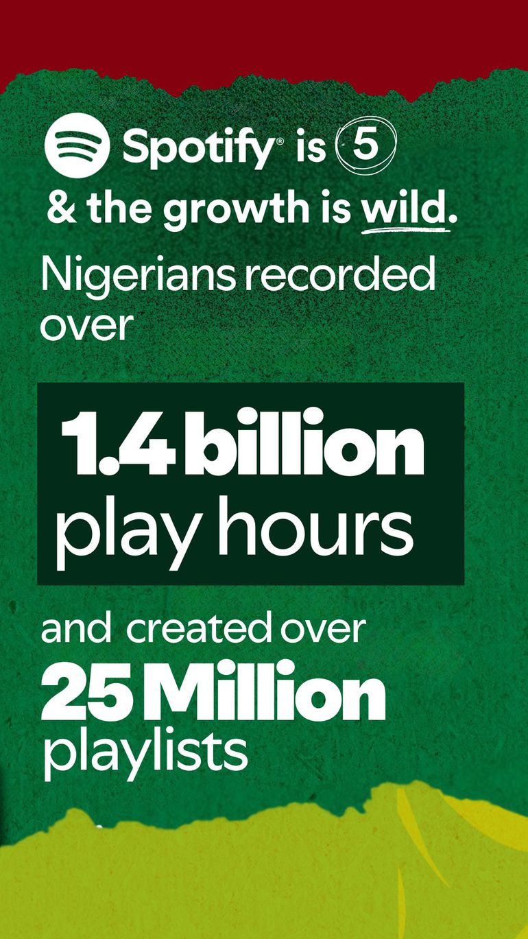 Over the past five years, Nigerians have created over 25million user-generated playlists on Spotify.