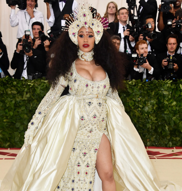 The queen of the Bardi Gang is next on this list. Back in 2021, when she was pregnant with her first child, Kulture, Cardi B stunned in a form-fitting embellished gown that perfectly showed off her pregnancy. On the red carpet, she wore an ornate gilded headpiece and let her naturally textured curls spill down her back. Known for turning heads, she embraced her baby bump with confidence and elegance.