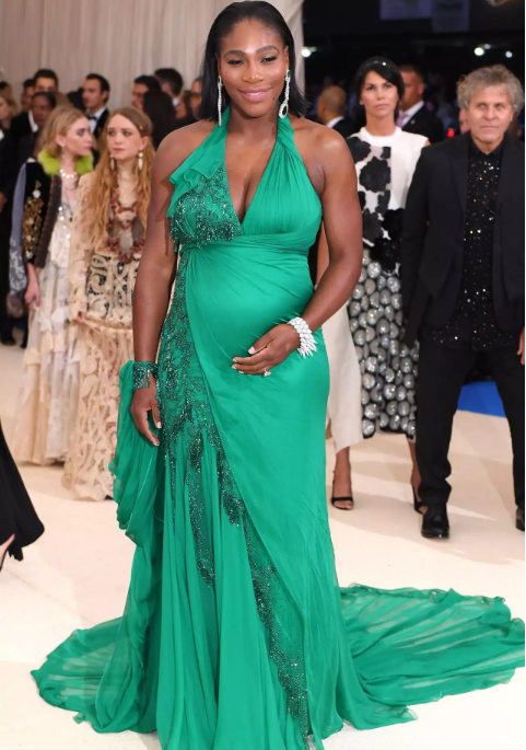 Pregnant with her first child, the Grand Slam champion Serena Williams glowed in an emerald green Atelier Versace gown. In fact, Williams seems to like the Met Gala so much, she even used it as a venue to flaunt her baby bump in 2017, when she was pregnant with her daughter Alexis Olympia Ohanian Jr. Oh, then in 2023, she used it to announce her second pregnancy.