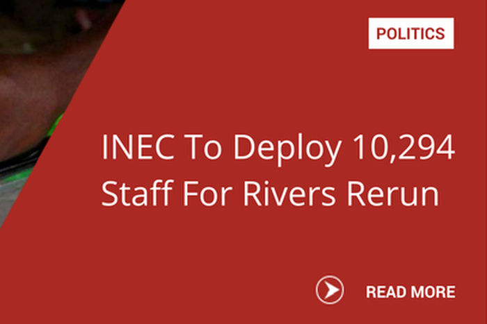 The Independent National Electoral Commission (INEC) said it would deploy 10,294 staff to conclude the re-run National and State Assembly elections in Rivers scheduled for Saturday.