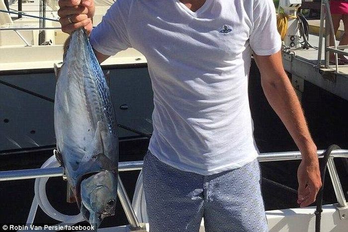 Van Persie and his family members on the fishing trip could not believe their luck as 'oh my God' exclamations were heard at the background.