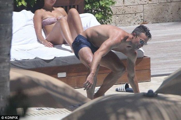 The 31-year-old was pictured soaking up the sun with his wife Bouchra in Miami.