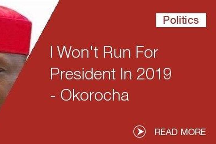 Okorocha said “I have been running for the presidency until God said I should settle for the Imo governorship. And that passion to become the President of the country is not just borne out of the thirst for the position, but had arisen out of the eagerness to offer the nation and her people a strong leadership; the essence would be to build a nation of our collective dreams and aspirations.”