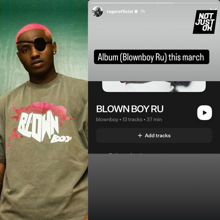 In a post on his Instagram story, Ruger revealed that he will be releasing his next album 'Blown Boy' in March 2025.