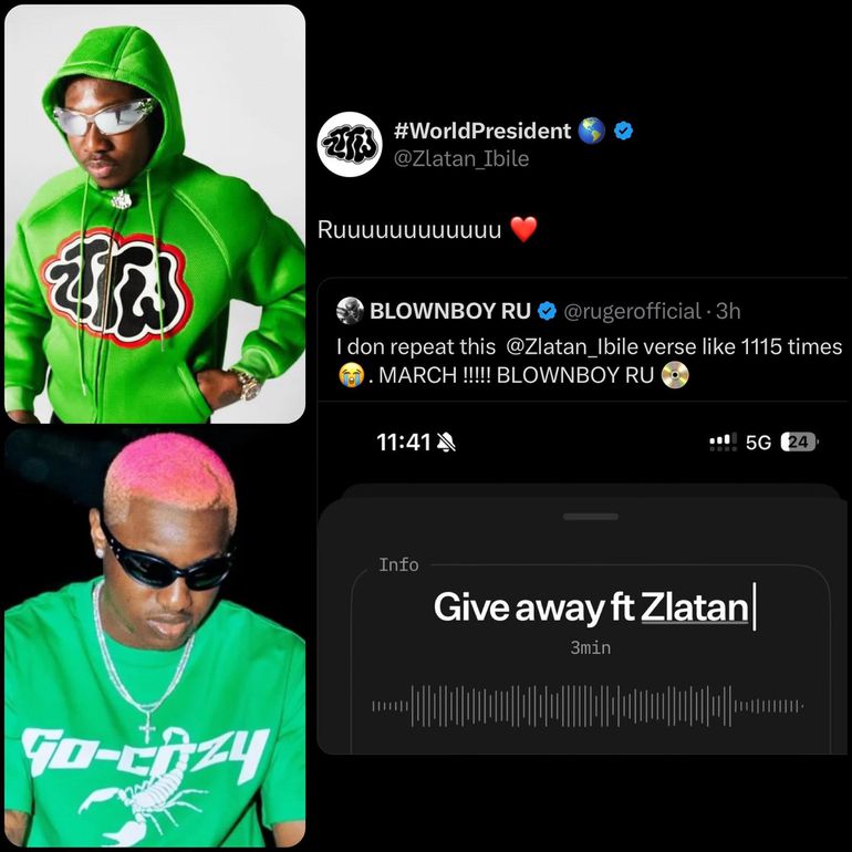 Ruger raved on Zlatan's verse in a post on his X account where he revealed he has listened to the verse over a thousand times.