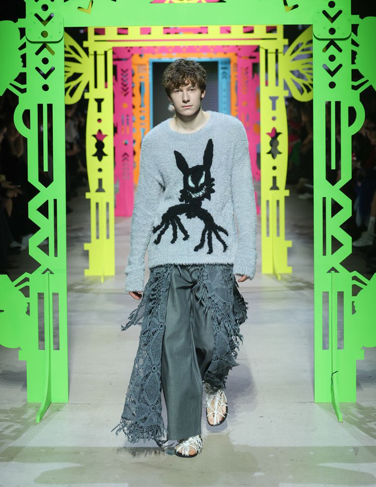 LURVIN’s “Memories” collection was an ode to childhood and Russian nature, but with a modern twist. Designer Natalia Podlesnykh wove together rustic traditions and contemporary design elements, using embroidered florals, knitted details, and vibrant hues of carrot, blue, and red. The collection struck a balance between sentimentality and forward-thinking fashion, making it a must-see on the runway.