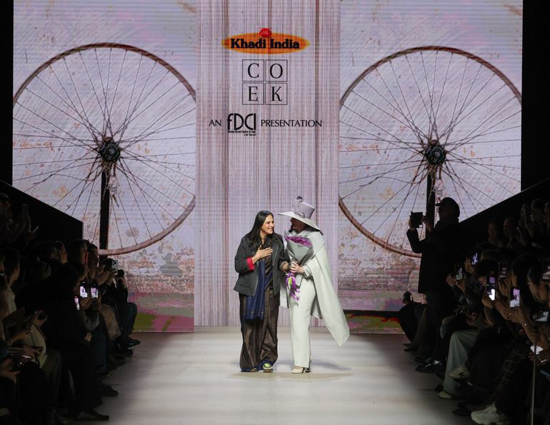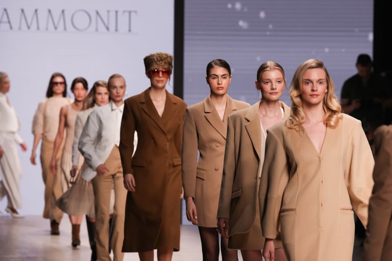 Premium womenswear brand AMMONIT brought a masterclass in textile craftsmanship. From flowing cashmere coats to structured wool jackets and silk dresses, the collection showcased the elegance of Russian design. Inspired by nature, the palette reflected sandy tones, pearlescent hues, and rich earthy colors. This collection reaffirmed that true luxury lies in craftsmanship and timeless design.
