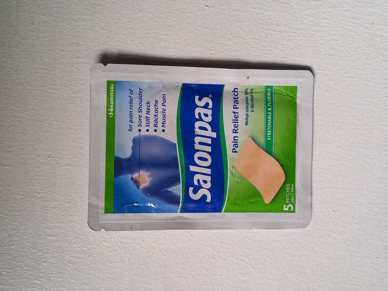 Inside, the Salonpas Pain Relief Patch measures 7cm by 10cm and comes in a pack of five. The patches are about palm-sized, flexible, and as thin as a Band-Aid. Instructions are printed both on the outer pack and the backing paper of each patch (points for that, because no one wants to go hunting for the pack later).