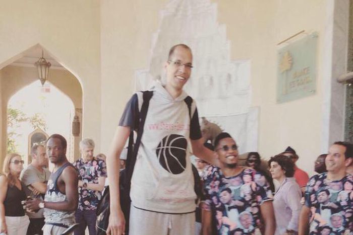 Though the man in the photo with Eto'o is not known, he is easily one of the most tallest men on earth.