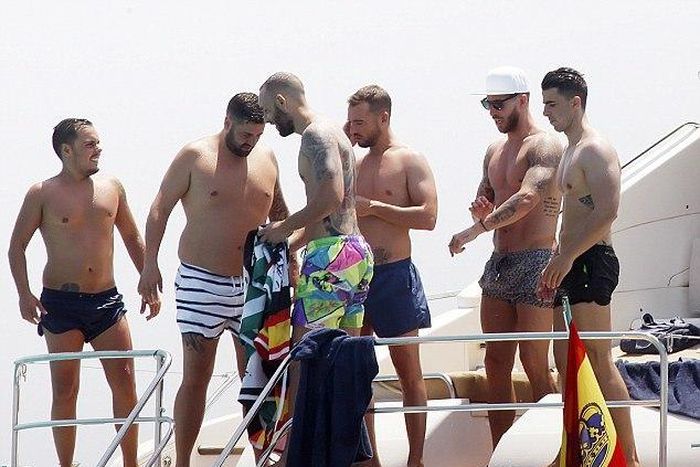 All transfer speculations were out of the mind of Sergio Ramos who was in the company of friends as he enjoyed the sun at Ibiza