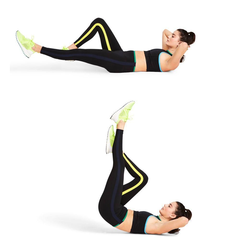 3) Pass Roll Lie faceup with left leg straight and hovering above floor, right leg bent with sole parallel to floor, and hands cradling head raised to look at thigh (first image) . Maintain shape while rocking back to lift hips off floor for one count (second image) , then slowly roll back to start position for two counts. Thats 1 rep. Do 10 reps per side. Tyler Joe