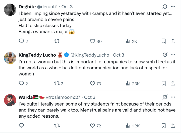 From the experiences of the women I interviewed, one thing remains a constant. While the majority advocated for menstrual leave, they also agreed that it reinforces old stereotypes about women at work, as shown in the tweets below.