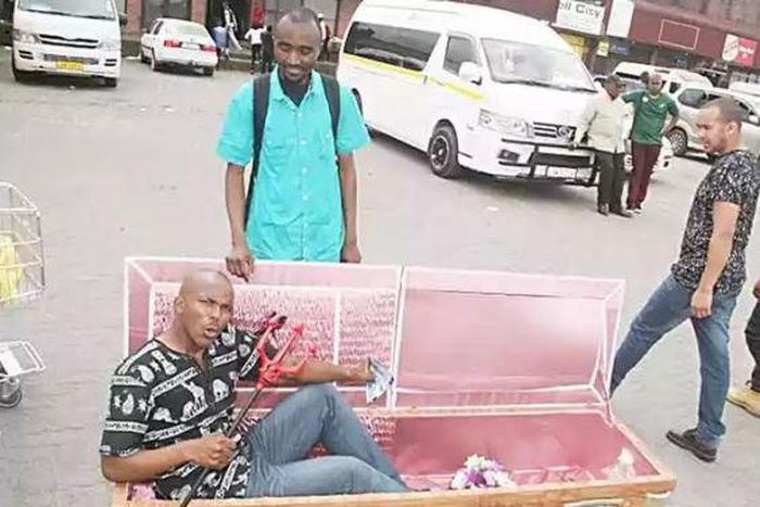 A South African pastor has decided to abandon a typical pulpit and preach from a coffin.