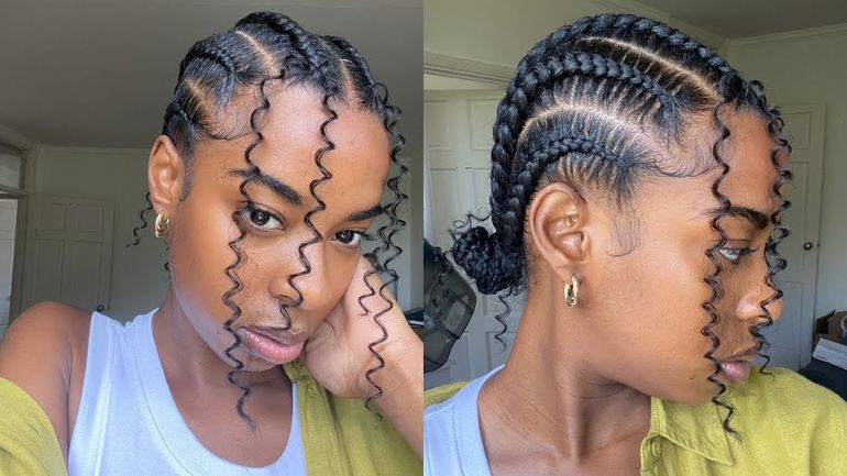 This is a hybrid of neat stitch cornrows and loose, curly extensions, giving you the best of both worlds.