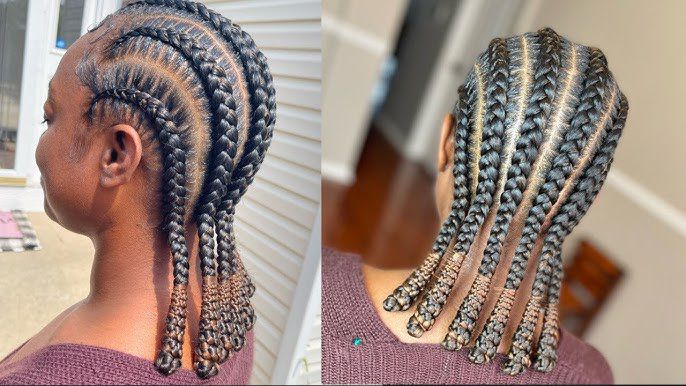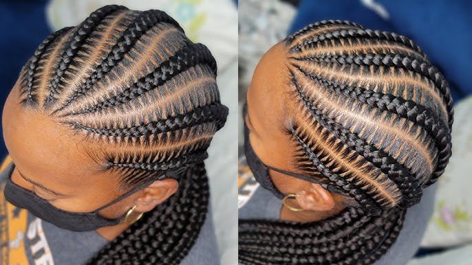 This is a remix of cornrows done in zigzag patterns and decorated with colourful or wooden beads.