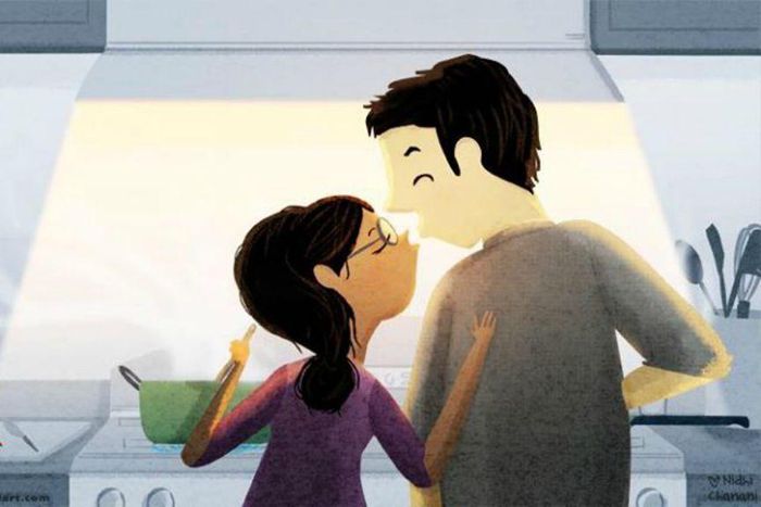 An Indian-born artist Nidhi Chanani created some illustrations which showed a man and a woman head over heels in love with each other, living a picture-perfect life.